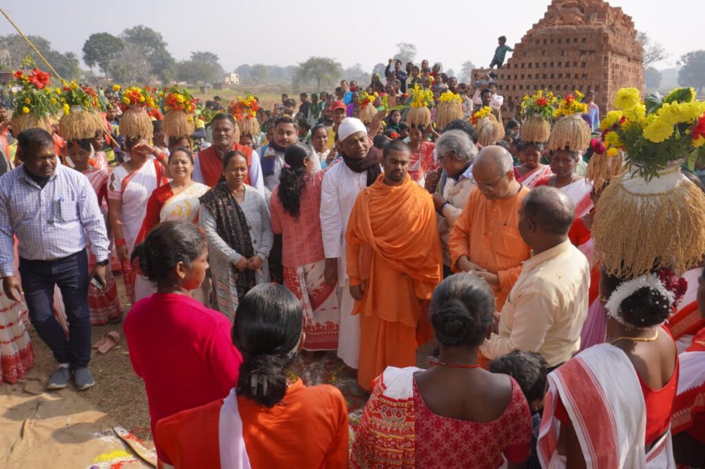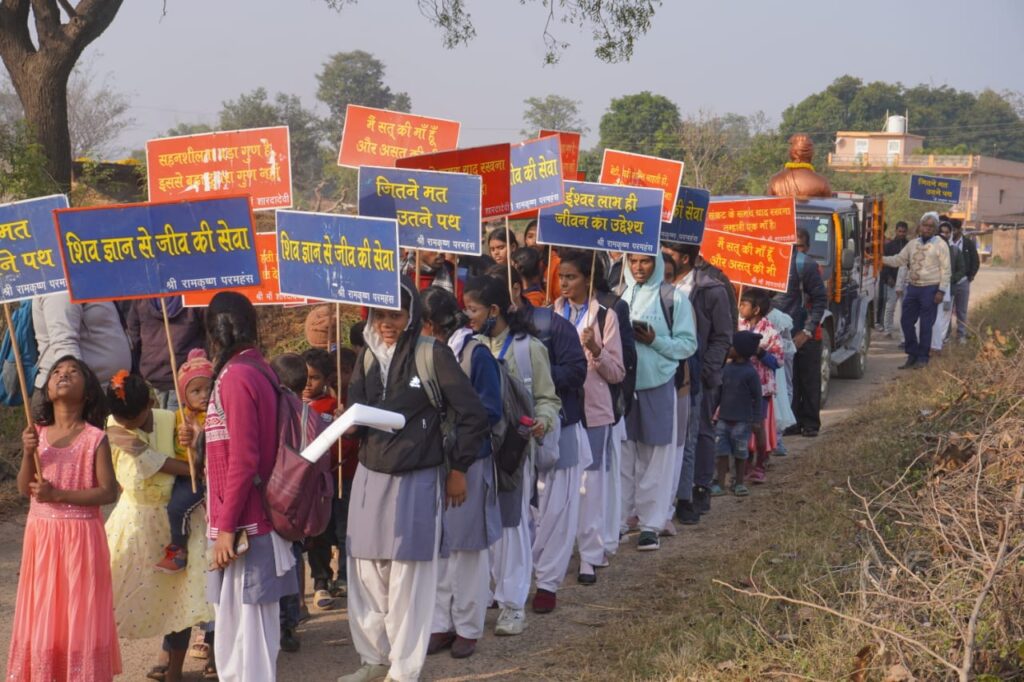 रामकृष्ण मिशन आश्रम, दिव्यायन कृषि विज्ञान केंद्र, मोराबादी, रांची के द्वारा झारखंड सरकार के खेलकूद एवं युवाकार्य निदेशालय के सहयोग से दिनांक 02/12/25 को रांची जिला के बुढ़मू प्रखंड के चैनगड़ा गांव में “प्रखण्ड स्तरीय युवा सम्मेलन” का भव्य आयोजन किया गया । कार्यक्रम में लगभग 600 प्रतिभागी शामिल हुए । कार्यक्रम की शुरुआत आश्रम के योग शिक्षक श्री प्रीतम बनिक के द्वारा योग अभ्यास के साथ की गई । उन्होंने स्वास्थ के लिए योग एवं दिनचर्या के विषय में भी बताया। वैदिक मंत्र पाठ के साथ दीप प्रज्वलन की गई। तत्पश्चात् श्रीमती सुनीता देवी एवं उनके समूह के द्वारा स्वागत गीत एवं नृत्य प्रस्तुत की गई । आश्रम के द्वारा संचालित अखंडानंद शिक्षा एवं संस्कार केन्द्र, लावागढ़ की अंशिका कुमारी ने स्वदेश मंत्र का पाठ किया। स्वागत भाषण विवेकानंद ग्राम विकास केंद्र, खरकुटोली के सचिव श्री महावीर मुंडा के द्वारा दी गई। तत्पश्चात् सामूहिक हनुमान चालीसा का पाठ किया गया। आश्रम के सचिव स्वामी भवेशानंद जी ने सामूहिक ध्यान अभ्यास करवाकर पूरे कार्यक्रम का उद्देश्य बताया। उन्होंने बताया कि समाज रूपी पक्षी के दो पंख महिला एवं पुरुष है। यदि दोनों में संतुलन बना रहे तो समाज ऊंचाई पर पहुंचता है। उन्होंने युवाओं के बीच “नया भारत गढ़ों” विषय पर विशेष चर्चा करते हुए स्वामी विवेकानंद के जीवनी एवं वाणी को बताने के साथ ही शिक्षा का स्वरूप – विद्यालय शिक्षा, कारीगरी शिक्षा और नैतिक शिक्षा के स्वरूप को बताया । उन्होंने स्वामीजी की वाणी “बनो और बनाओ” से युवाओं को देश के पुनरुत्थान में अपना सहयोग सुनिश्चित करने को कहा। इसके लिए उन्होंने 3 H – Hand(हाथ), Head (बुद्धि) एवं Heart(अच्छे भाव) के विषय में बताया। युवा के द्वारा संबोधन के अंतर्गत श्री मोतीलाल लोहरा एवं सुश्री रूपा कुमारी ने अपनी बात रखी। आश्रम से आए स्वामी भक्तिशानन्द जी ने चरित्र निर्माण को राष्ट्रीय उन्नति के लिए जरूरी बताया।उन्होंने स्वामी विवेकानन्द की विभिन्न विचारों से युवाओं को अवगत करवाया। आश्रम से आए ब्रह्मचारी राजीव चैतन्य ने आश्रम द्वारा संचालित विभिन्न कार्यक्रमों के विषय में बताया। कार्यक्रम की मुख्य अतिथि राजकीय उत्क्रमित उच्च विद्यालय, चैनगड़ा की प्रधानाध्यापिका श्रीमती कमला भगत ने युवाओं को संबोधित करते हुए कहा कि युवा सम्मेलन युवाओं को लक्ष्य प्राप्ति का एक माध्यम है। चैनगड़ा की मुखिया देवंती देवी ने भी अपनी बात रखी। RKMVERI के विद्यार्थियों के द्वारा नुक्कड़ नाटक “नशा- एक छोटी चिंगारी” के द्वारा नशा के विरुद्ध जागरूकता फैलाया गया। बुढ़मू प्रखंड के प्रमुख श्री सत्यनारायण मुंडा ने धन्यवाद ज्ञापन दिया। सारदा महिला समिति की सचिव श्रीमती र