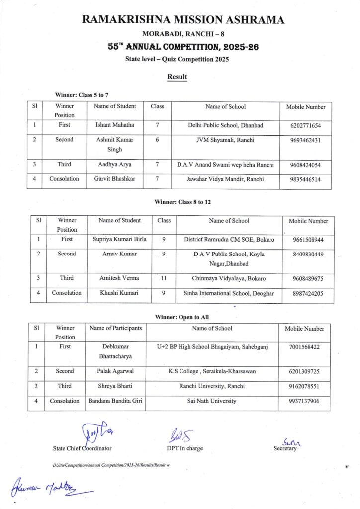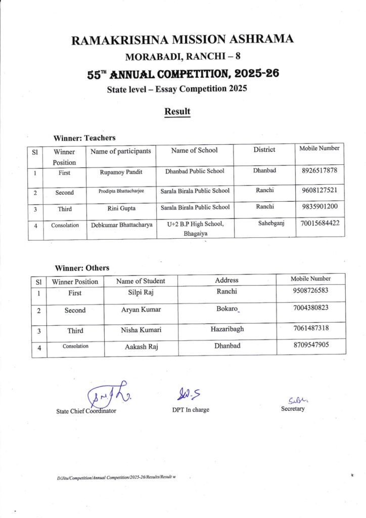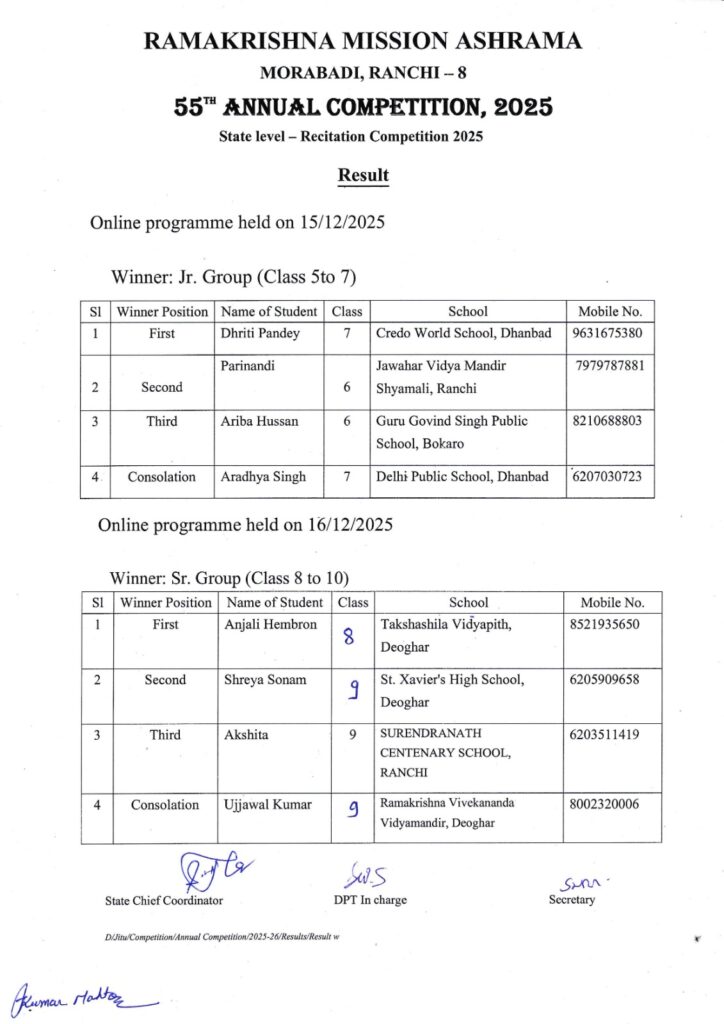 Ramakrishna Mission Ashrama, Morabadi, Ranchi-834008