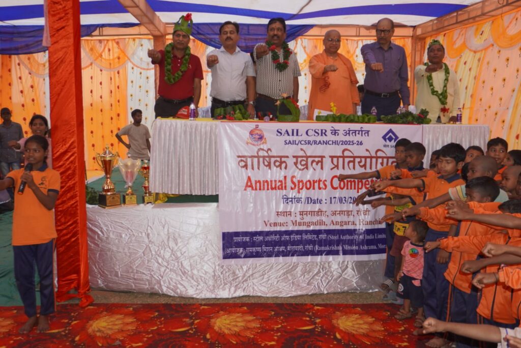 राँची, 17 मार्च 2026: Steel Authority of India Limited (SAIL) के CSR इकाई के अंतर्गत रामकृष्ण मिशन आश्रम, मोराबादी, राँची के सहयोग से आज वार्षिक खेल प्रतियोगिता का उत्साहपूर्ण एवं सफल आयोजन किया गया। इस प्रतियोगिता में 7 अखंडानंद शिक्षा एवं संस्कार केंद्रों (ASSK) के लगभग 250 बालक एवं बालिकाओं ने सक्रिय रूप से भाग लिया।